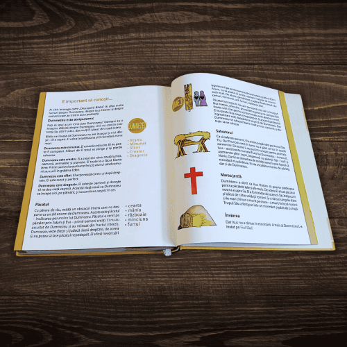 - Inspiră credința și valorile creștine – fiecare pagină îi ajută pe cei mici să descopere dragostea lui Dumnezeu și lecțiile importante din Scriptură.