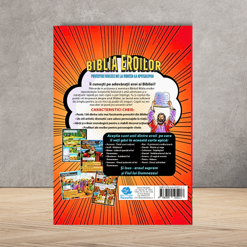 Crezi că știi Biblia? Gândește-te din nou! Ai auzit de eroii Bibliei? Nu vorbim despre supereroi imaginari, ci despre oameni simpli, ca tine, care – prin credință – au schimbat lumea. Biblia Eroilor este o carte fascinantă care repovestește Biblia de la Geneza până la Apocalipsa într-un stil palpitant, cu ilustrații spectaculoase și un text ușor de înțeles pentru copiii cu vârste între 6 și 12 ani.