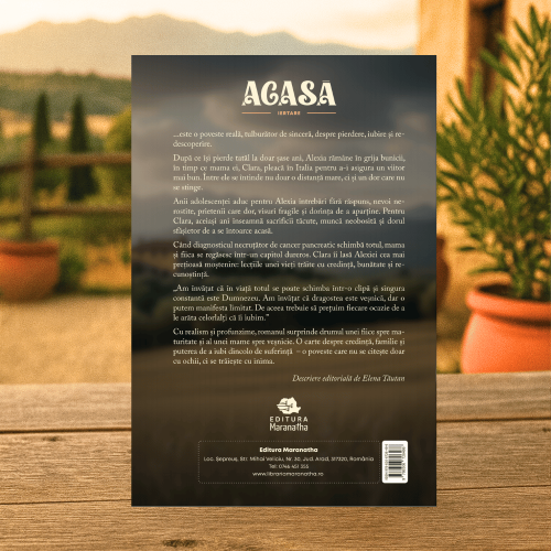 „Am învățat că în viață totul se poate schimba într-o clipă și singura constantă este Dumnezeu. Am învățat că dragostea este veșnică, dar o putem manifesta limitat. De aceea trebuie să prețuim fiecare ocazie de a le arăta celorlalți că îi iubim.” Cu realism și profunzime, romanul surprinde drumul unei fiice spre maturitate și al unei mame spre veșnicie. O carte despre credință, familie și puterea de a iubi dincolo de suferință – o poveste care nu se citește doar cu ochii, ci se trăiește cu inima.