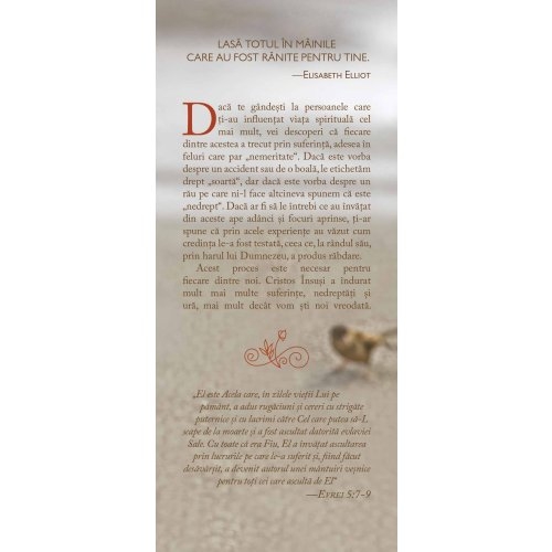 Daca te gandesti la persoanele care ti‑au influentat viata spirituala cel mai mult, vei descoperi ca fiecare dintre acestea a trecut prin suferinta, adesea in feluri care par „nemeritate“. Daca este vorba despre un accident sau de o boala, le etichetam drept „soarta“, dar daca este vorba despre un rau pe care ni-l face altcineva spunem ca este „nedrept“. Daca ar fi sa le intrebi ce au invatat din aceste ape adanci si focuri aprinse, ti-ar spune ca prin acele experiente au vazut cum credinta le-a fost testata, ceea ce, la randul sau, prin harul lui Dumnezeu, a produs rabdare.
