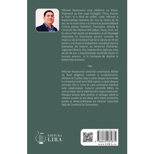 Milorad Novacovici prezintă autoritatea Bibliei ca fiind alegerea corectă a credinciosului. Aliniere la Cuvânt este o carte despre autoritate în contextul unei lumi fără repere, o carte despre principii într-o lume în care principiul esențial este relativitatea. Autorul prezintă Biblia ca unicul reper real și valid pentru viața creștinului. Mesajul acesta este practic și teologic până la ultimul cuvânt și are darul să-ți ofere protecția, pacea și binecuvântarea pe terenul supunerii față de Cuvântul lui Dumnezeu.