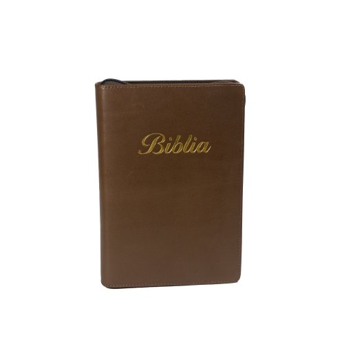 [ANTICARIAT] Biblia marime medie, maro, piele, fermoar, margini aurii, index, cuv. lui Isus cu rosu [MAR 057 PFI] (Produs cu defect)