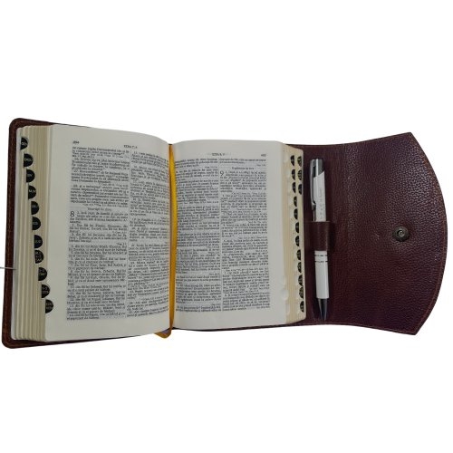 Interiorul Bibliii noastre este la fel de remarcabil. Dispune de un spatiu special conceput pentru a pastra un pix, astfel incat sa puteti marca sau sublinia versetele importante pe masura ce cititi. Marginile aurii si indexul pe margine faciliteaza navigarea rapida prin pagini si identificarea pasajelor cheie.