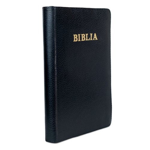 [ANTICARIAT] Biblie mare, piele, culoare negru texturat, fermoar, index, margini argintii, cuv. Isus cu rosu [SI 073 PFI] (Produs cu defect)