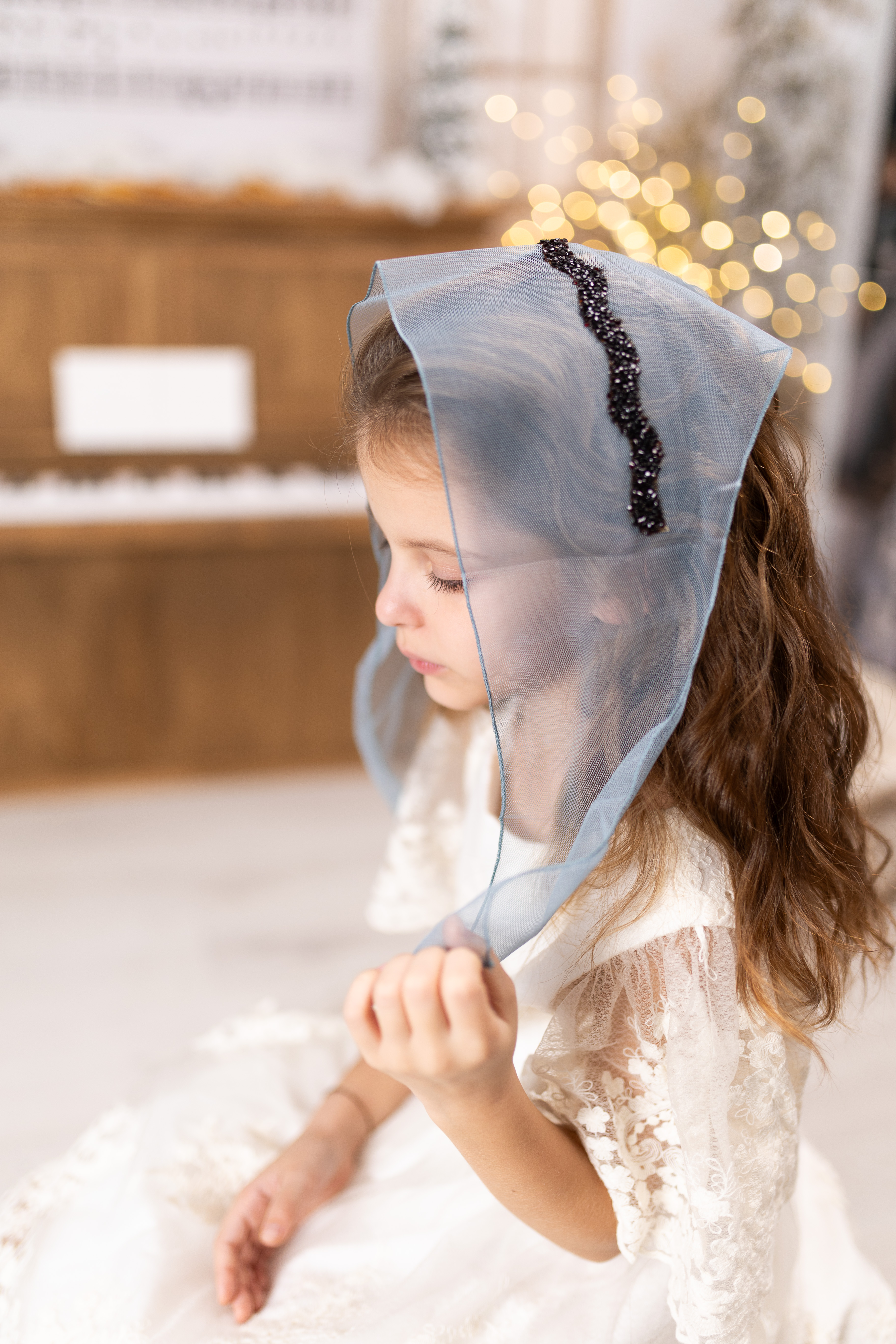 Batic din tul - albastru deschis cu pietre negre