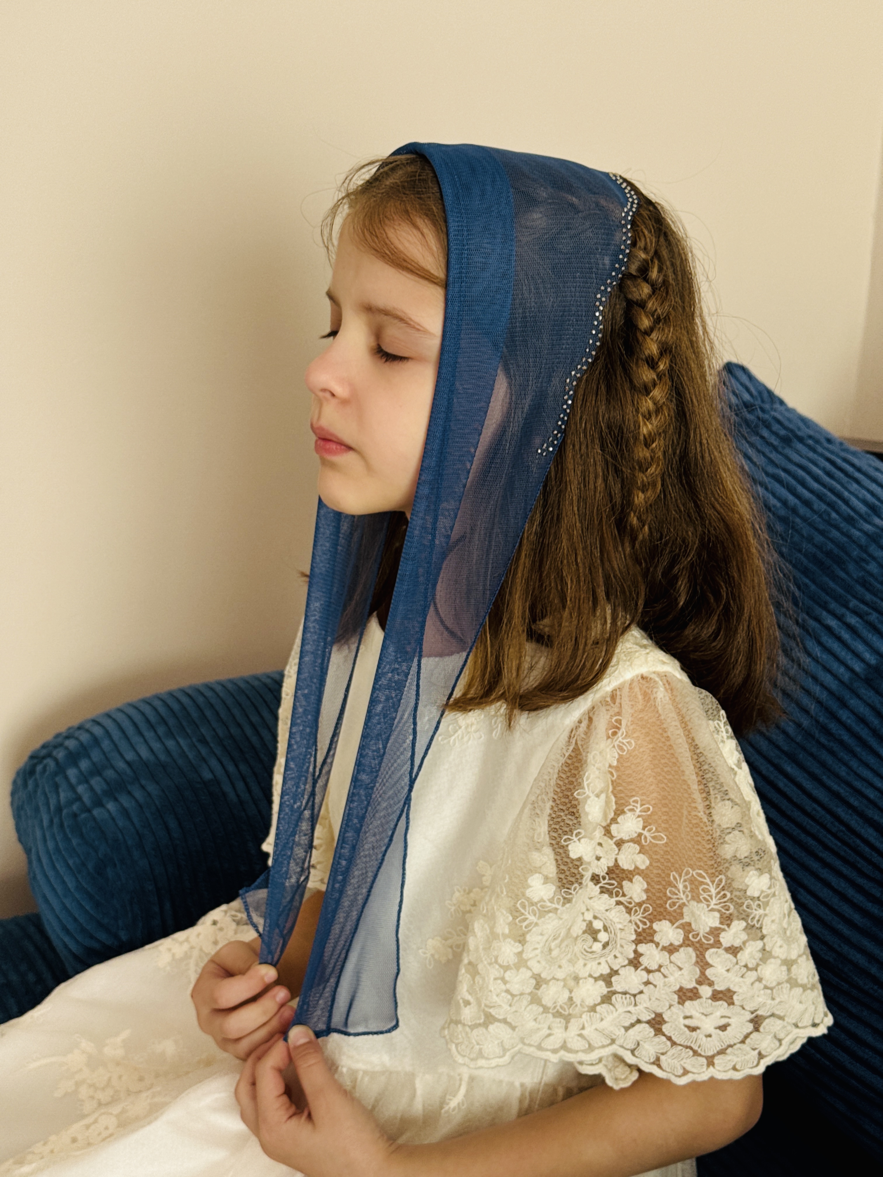 Batic din tul - albastru închis cu pietre pe margine