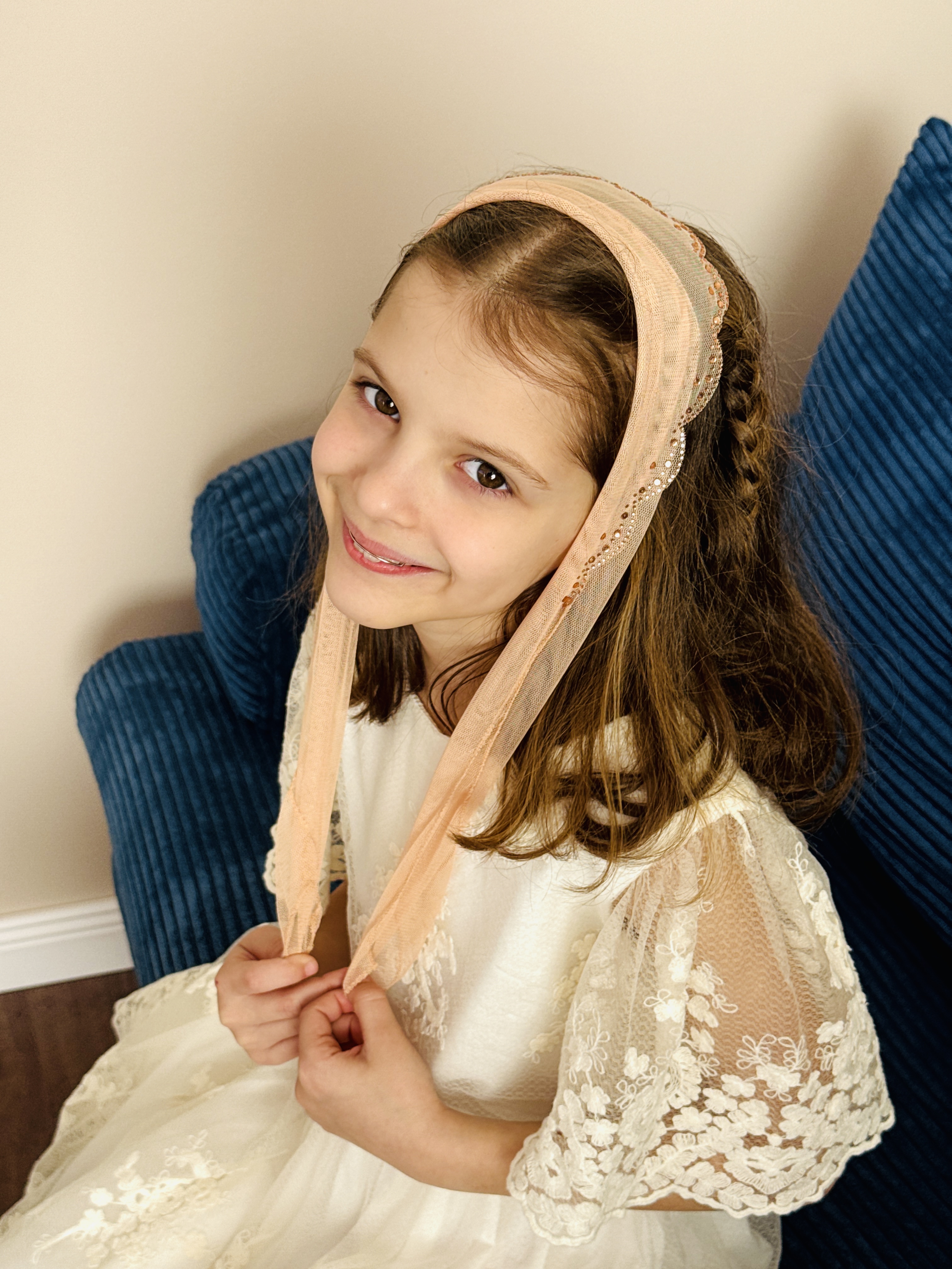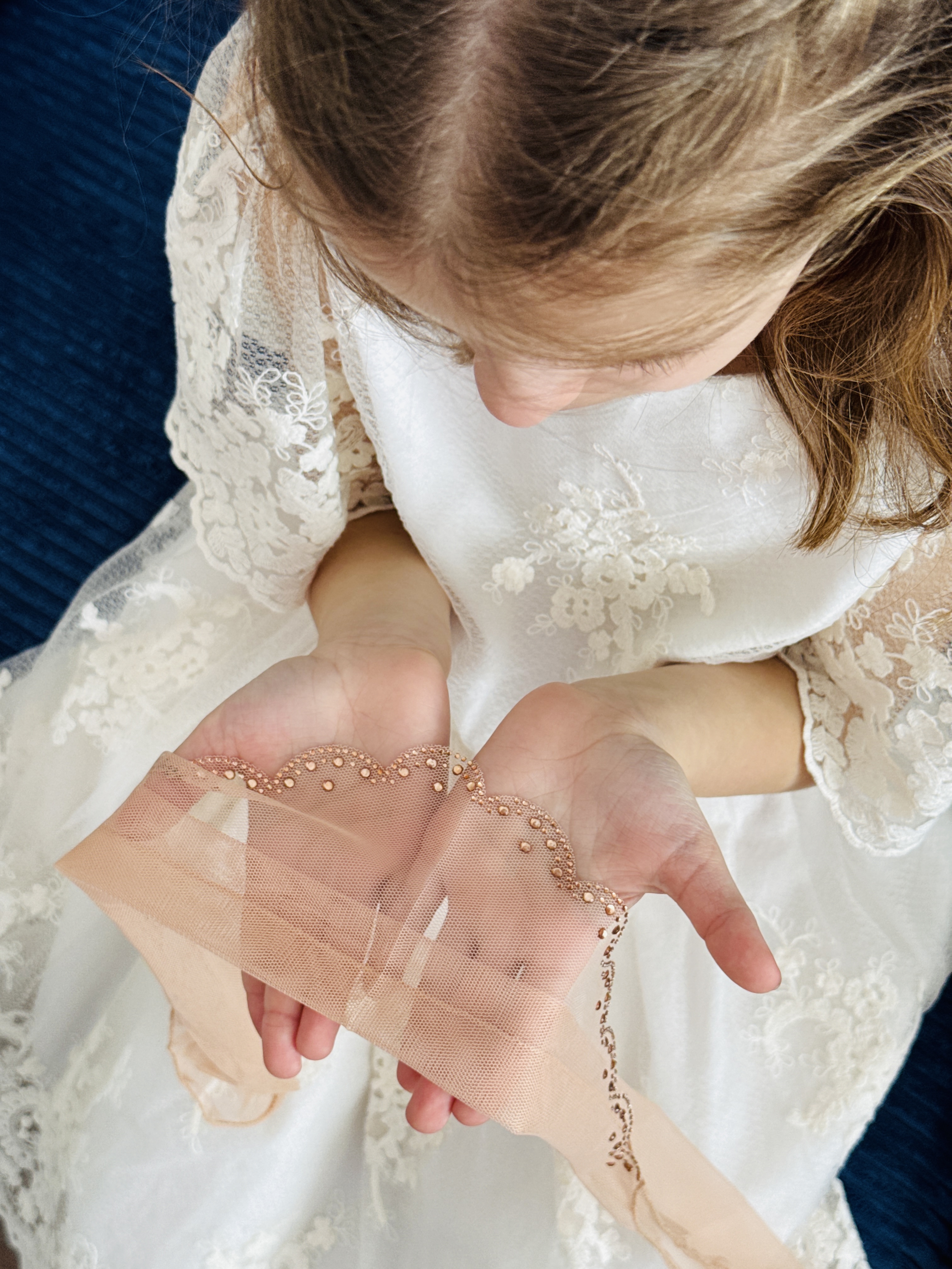 Batic din tul - bej pal cu pietre pe margine