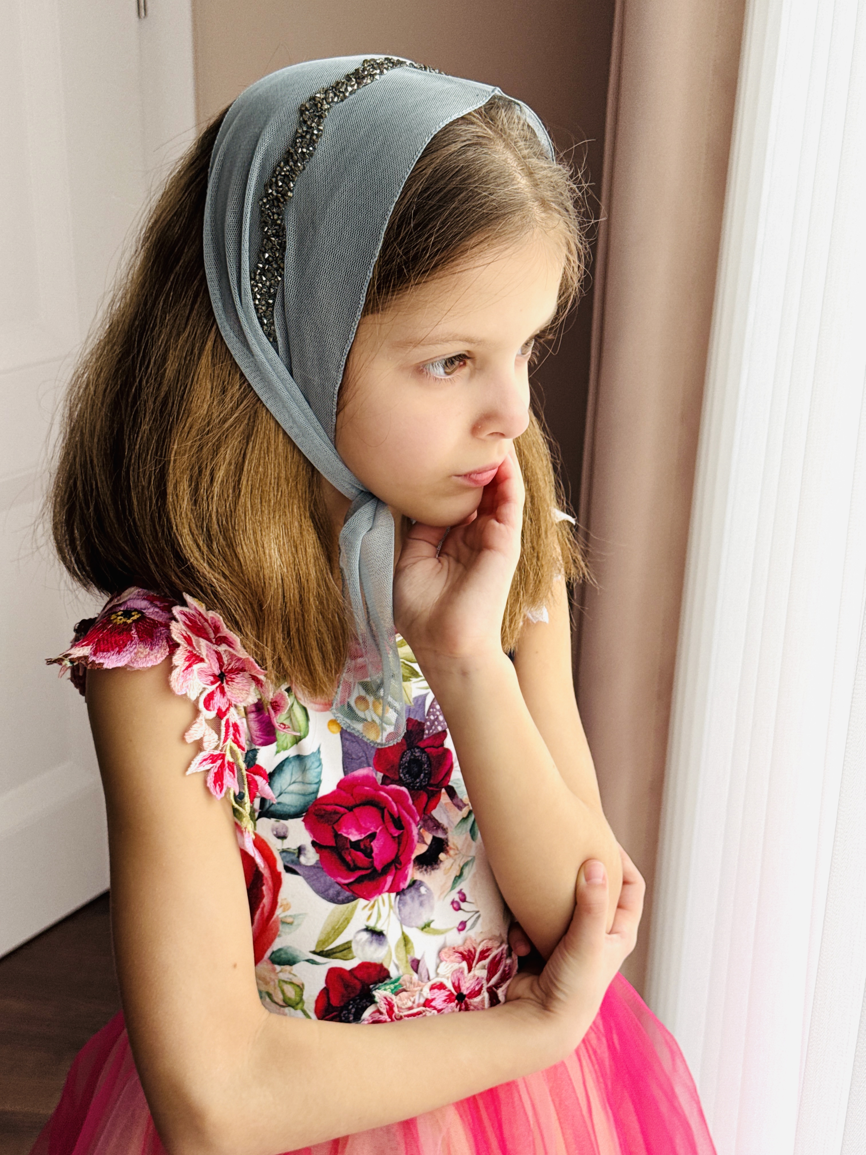 Batic din tul - gri cu pietre maro