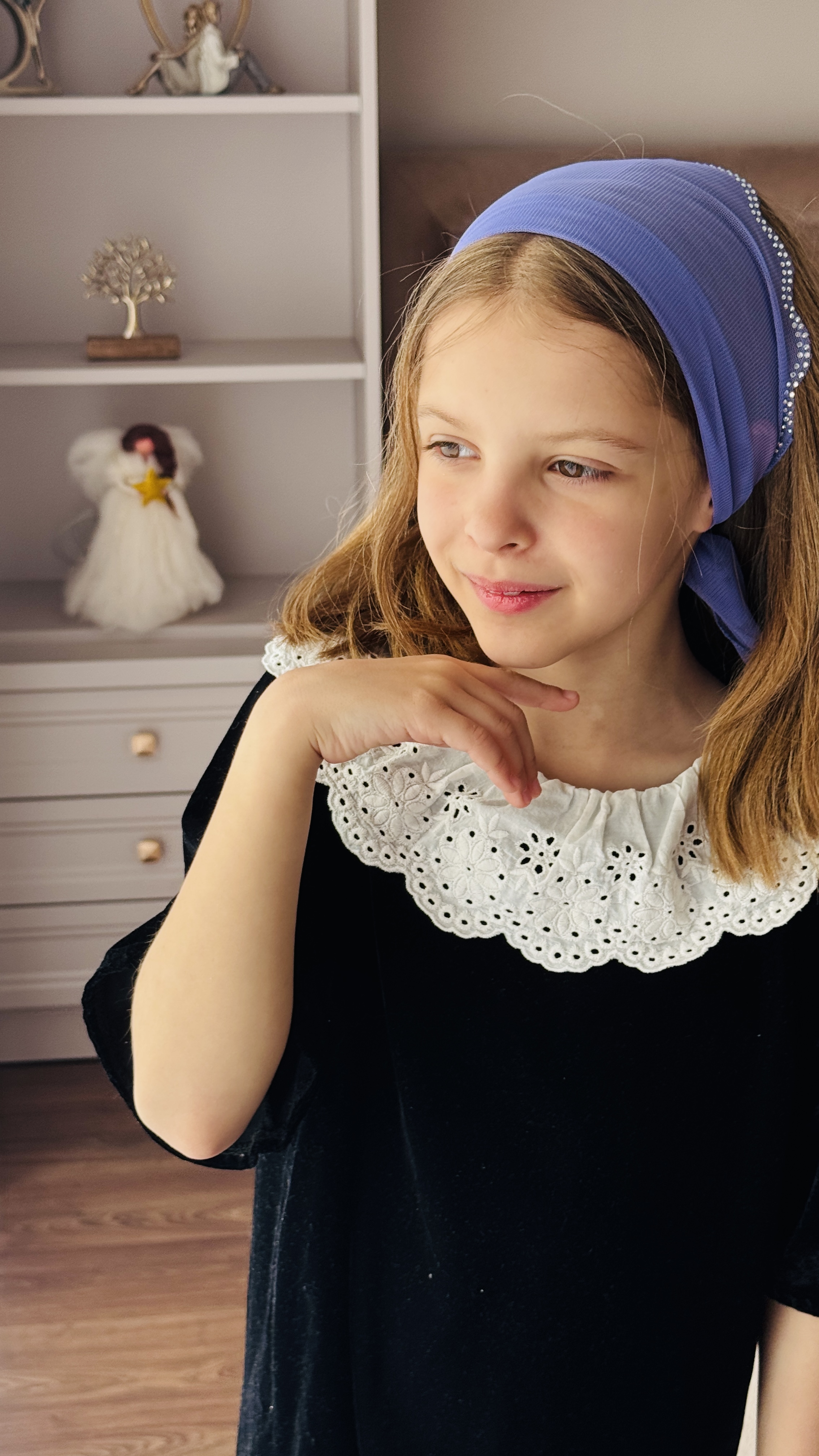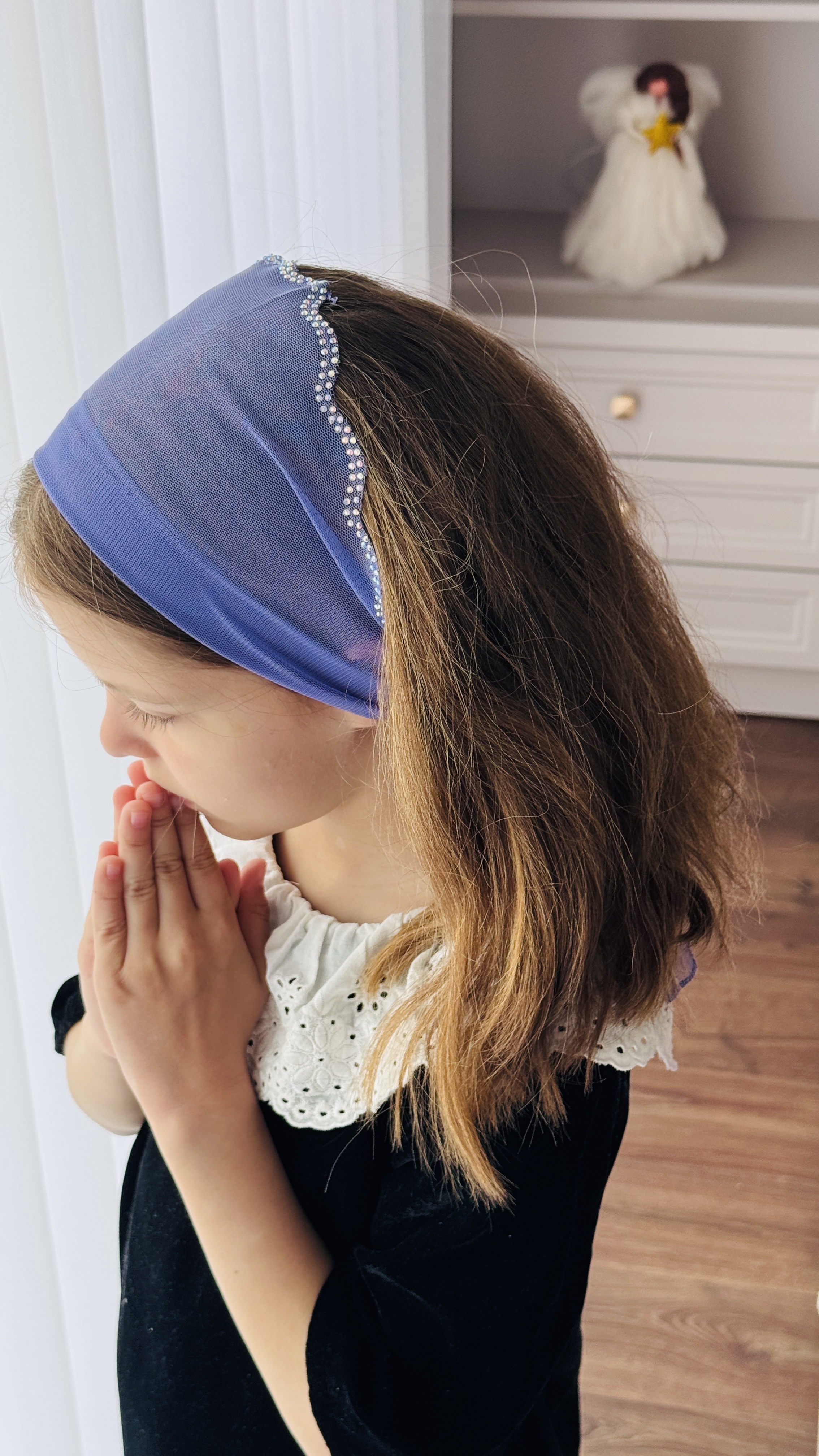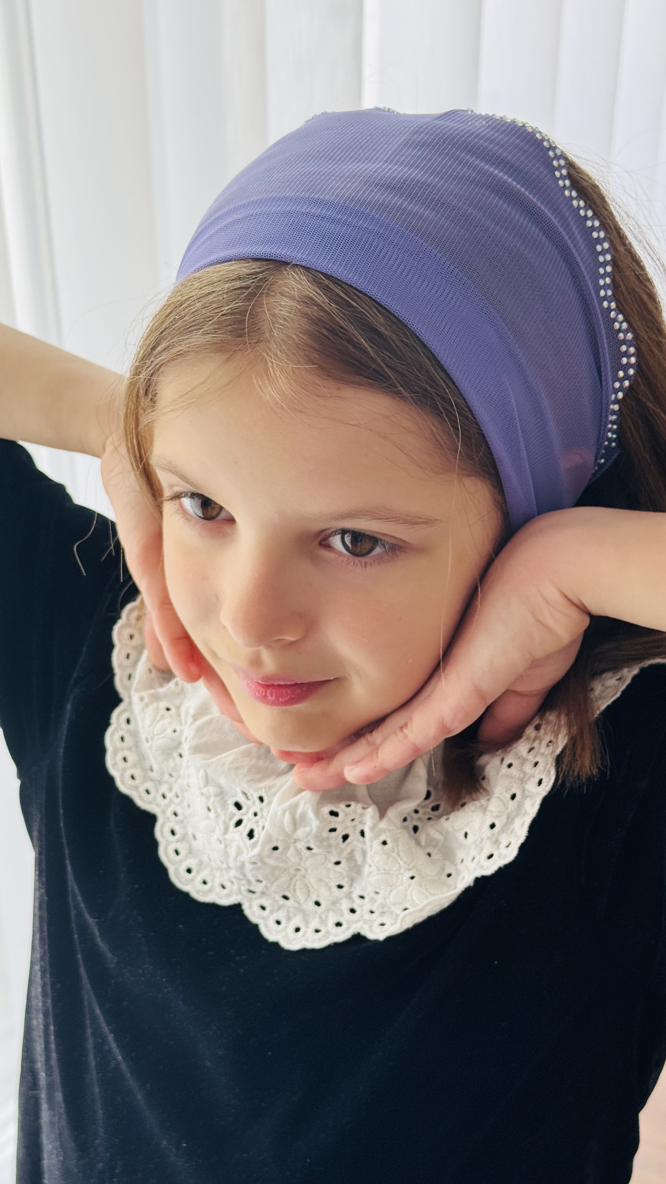 Batic din tul - mov cu pietre pe margine
