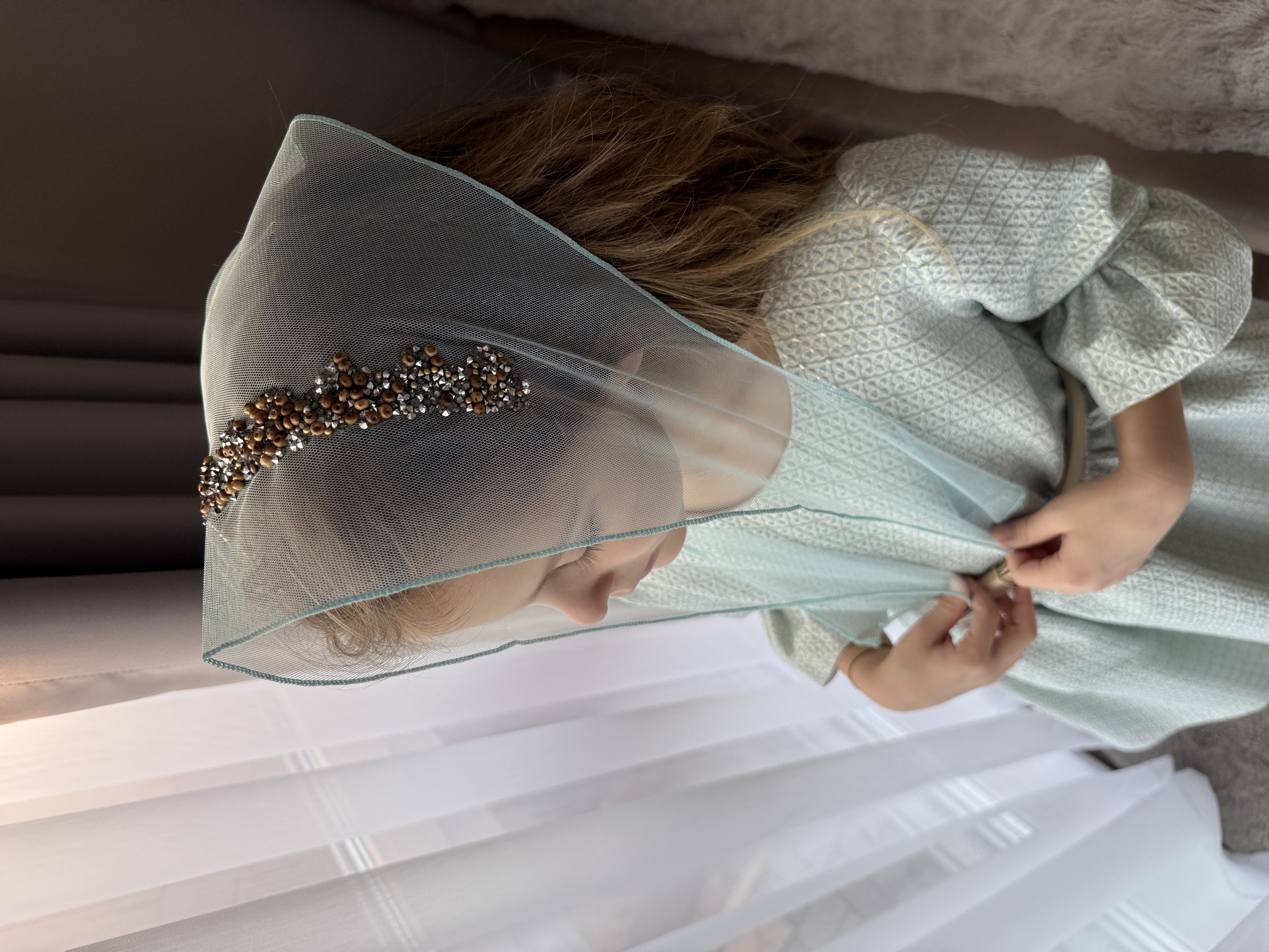 Batic din tul - turcoaz cu margele maro