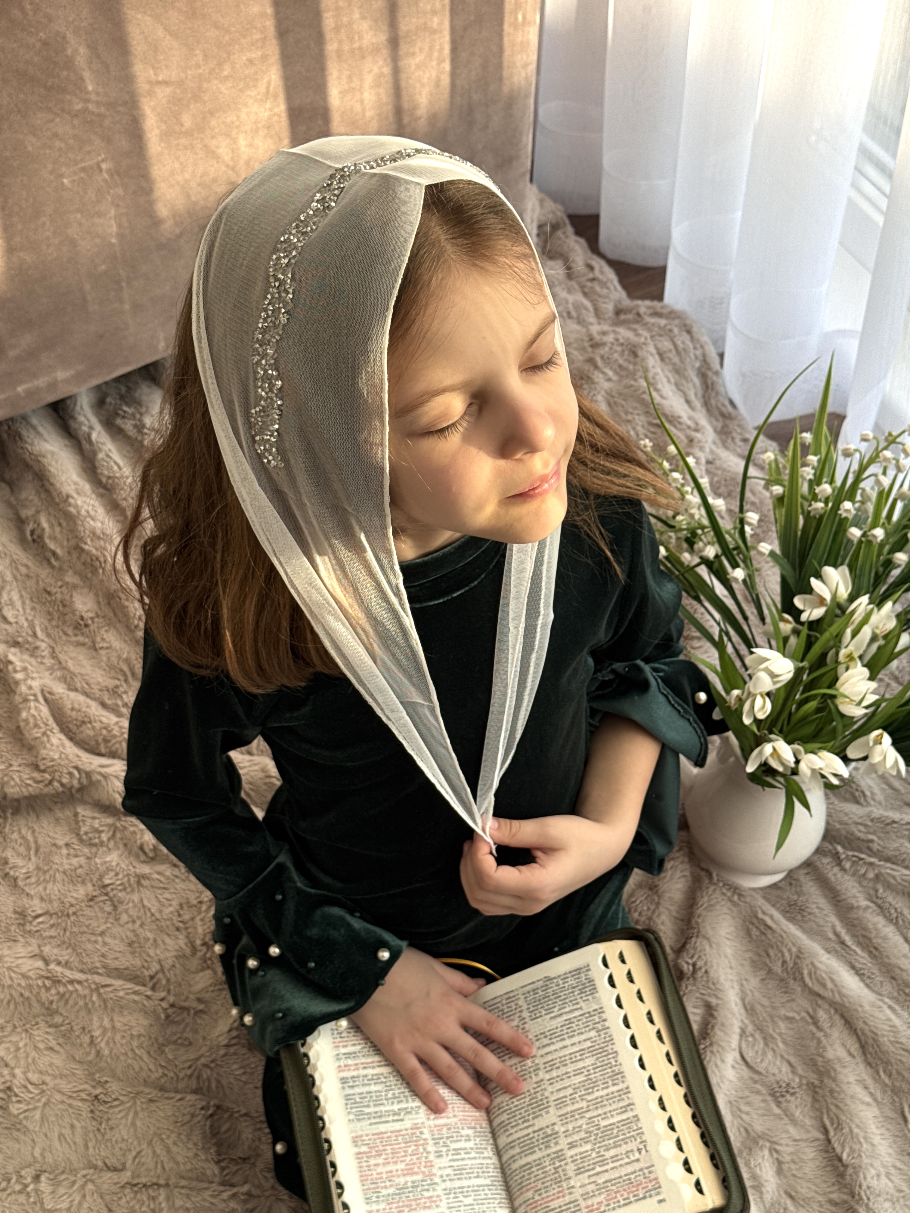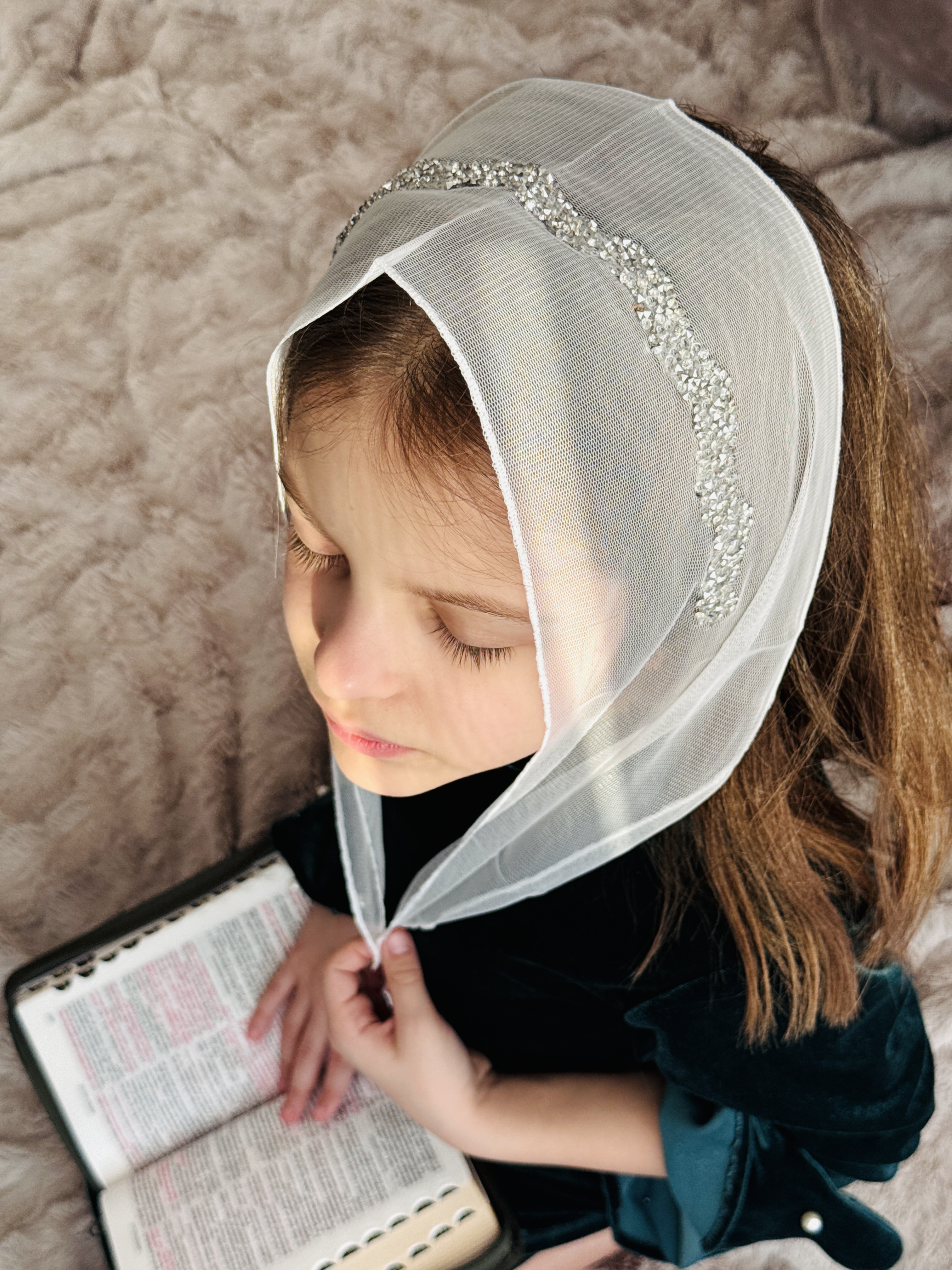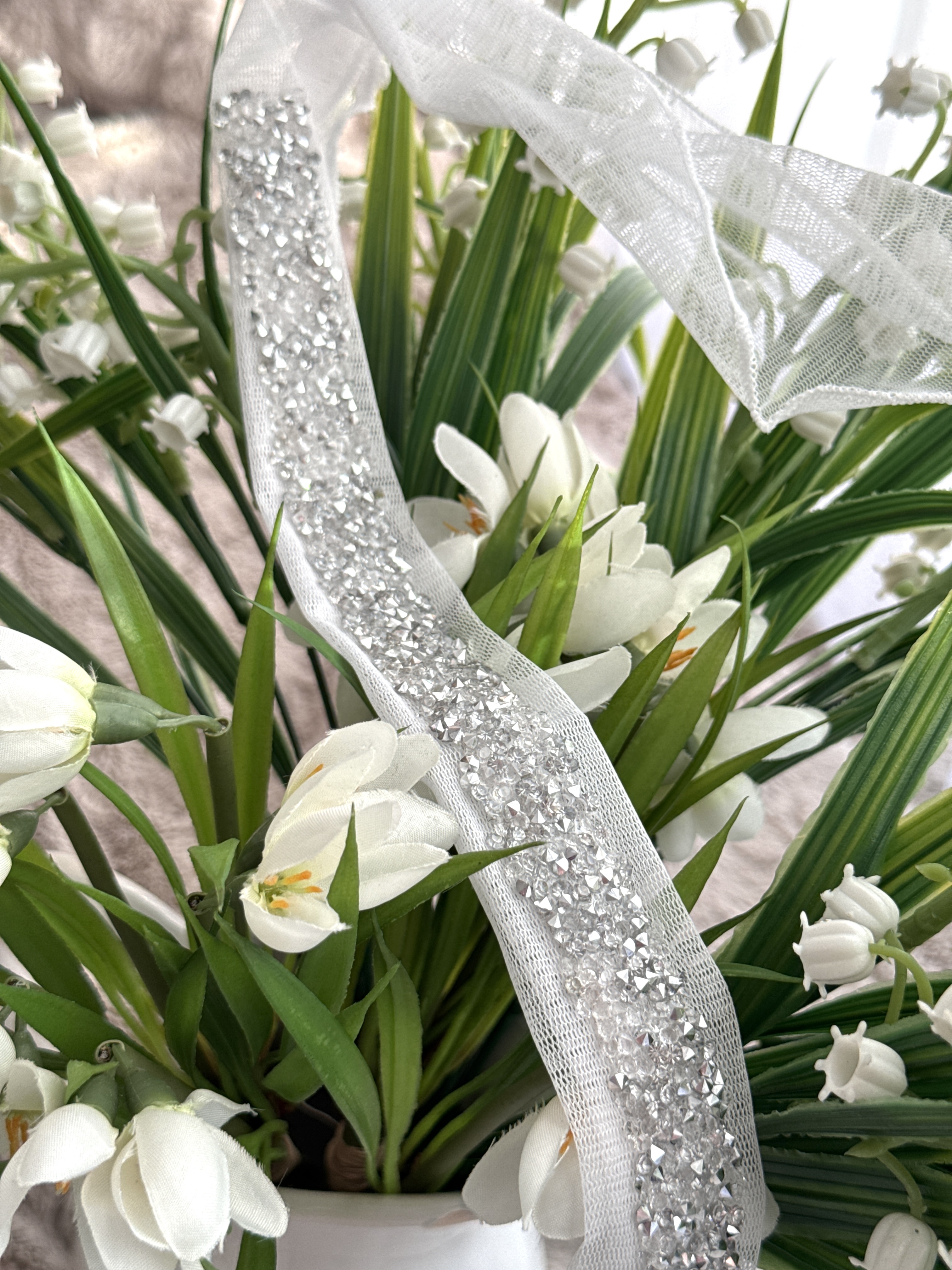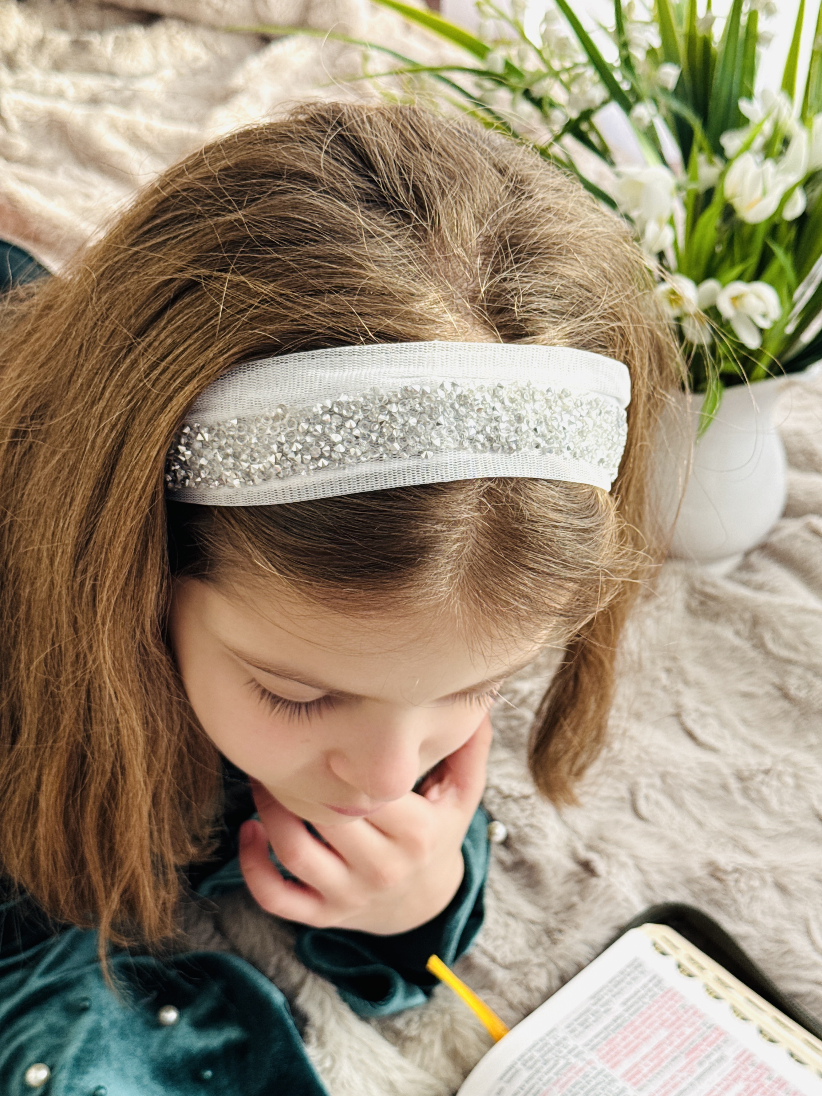 Bentiță din tul - alba cu pietre argintii