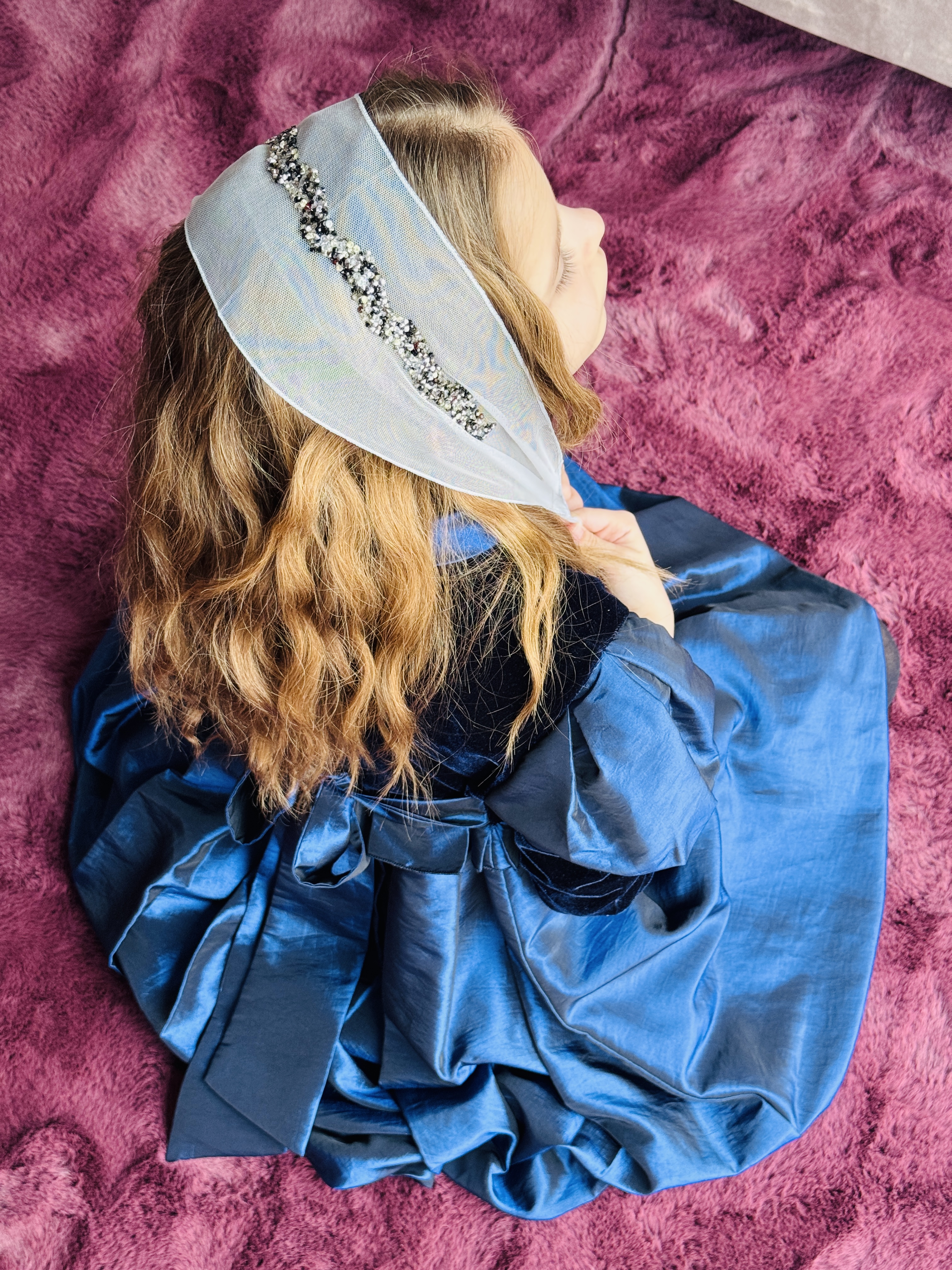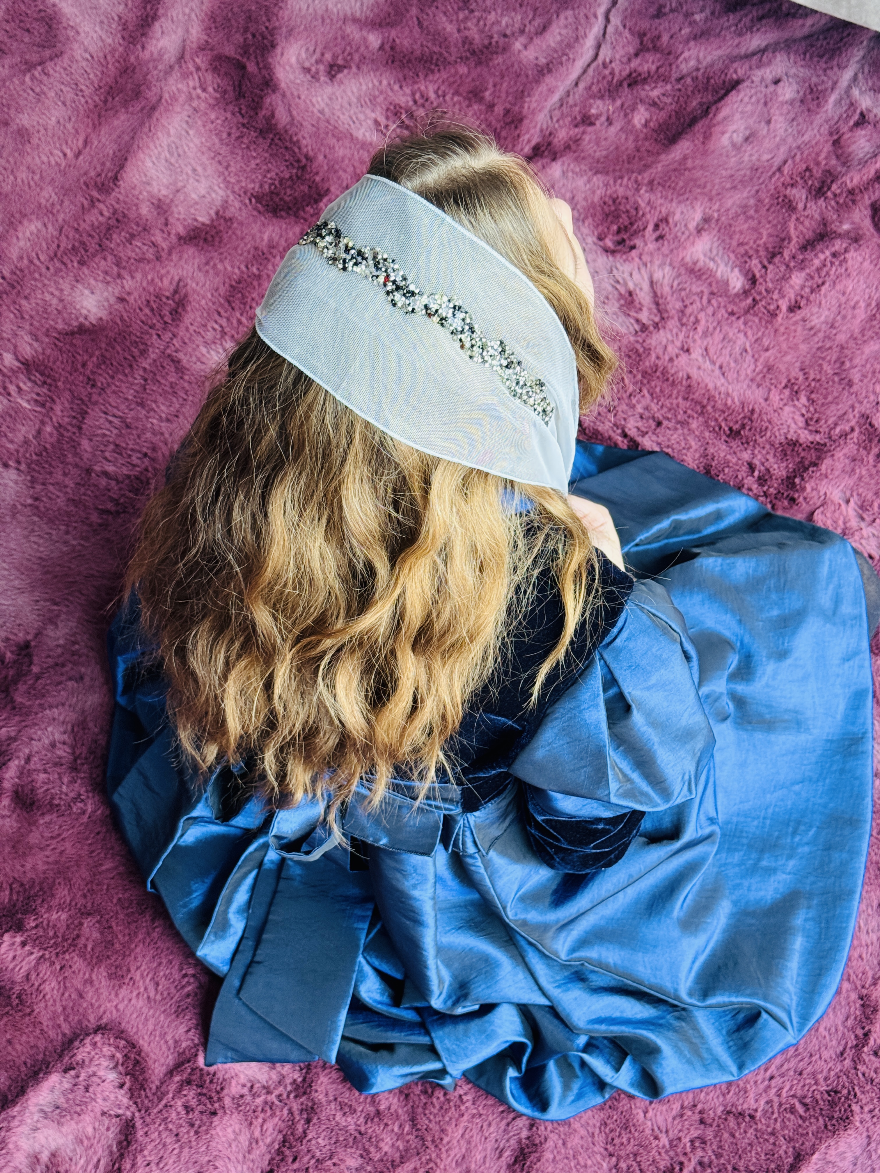 Bentiță din tul - gri cu pietre negre/argintii