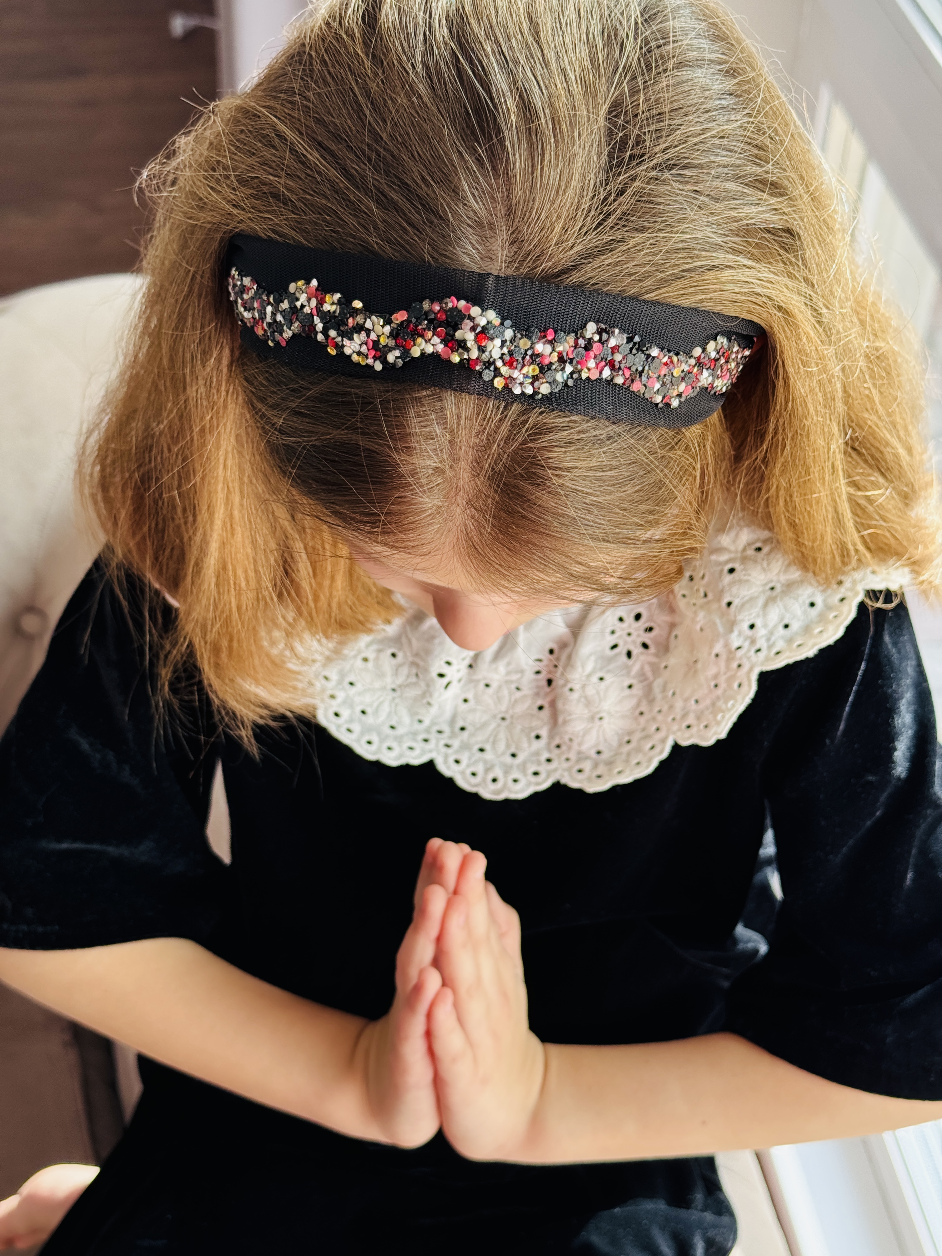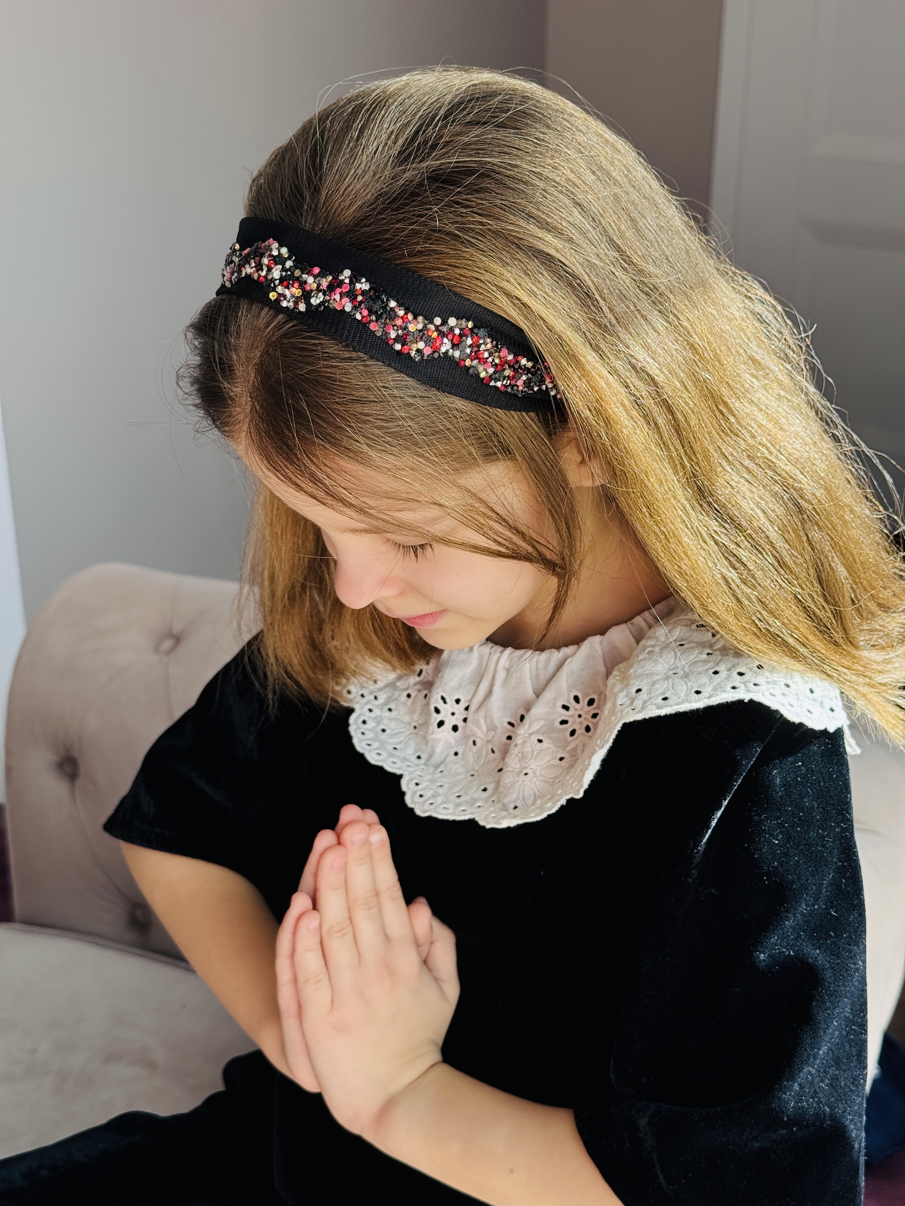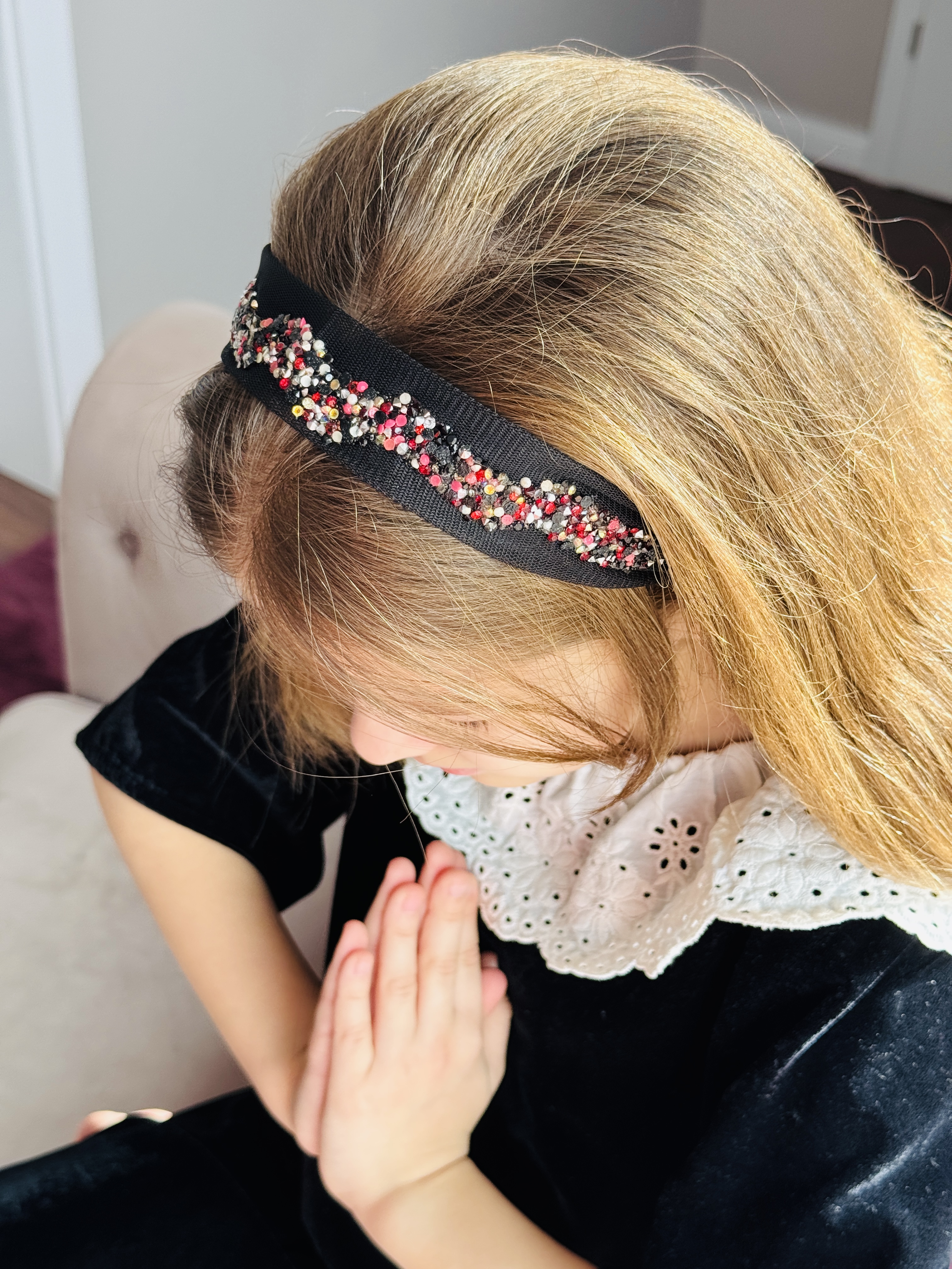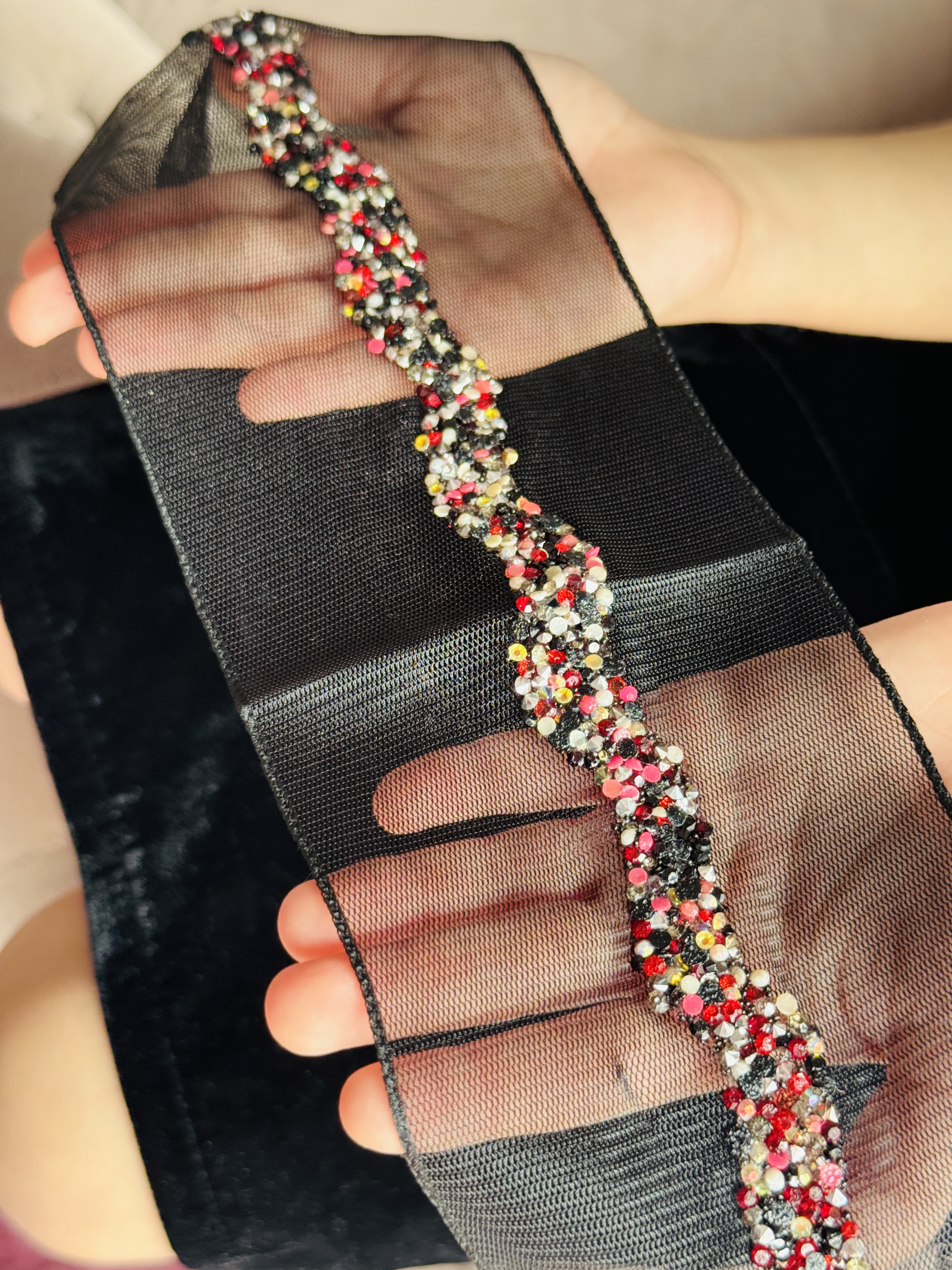 Bentiță din tul - neagra cu pietre colorate