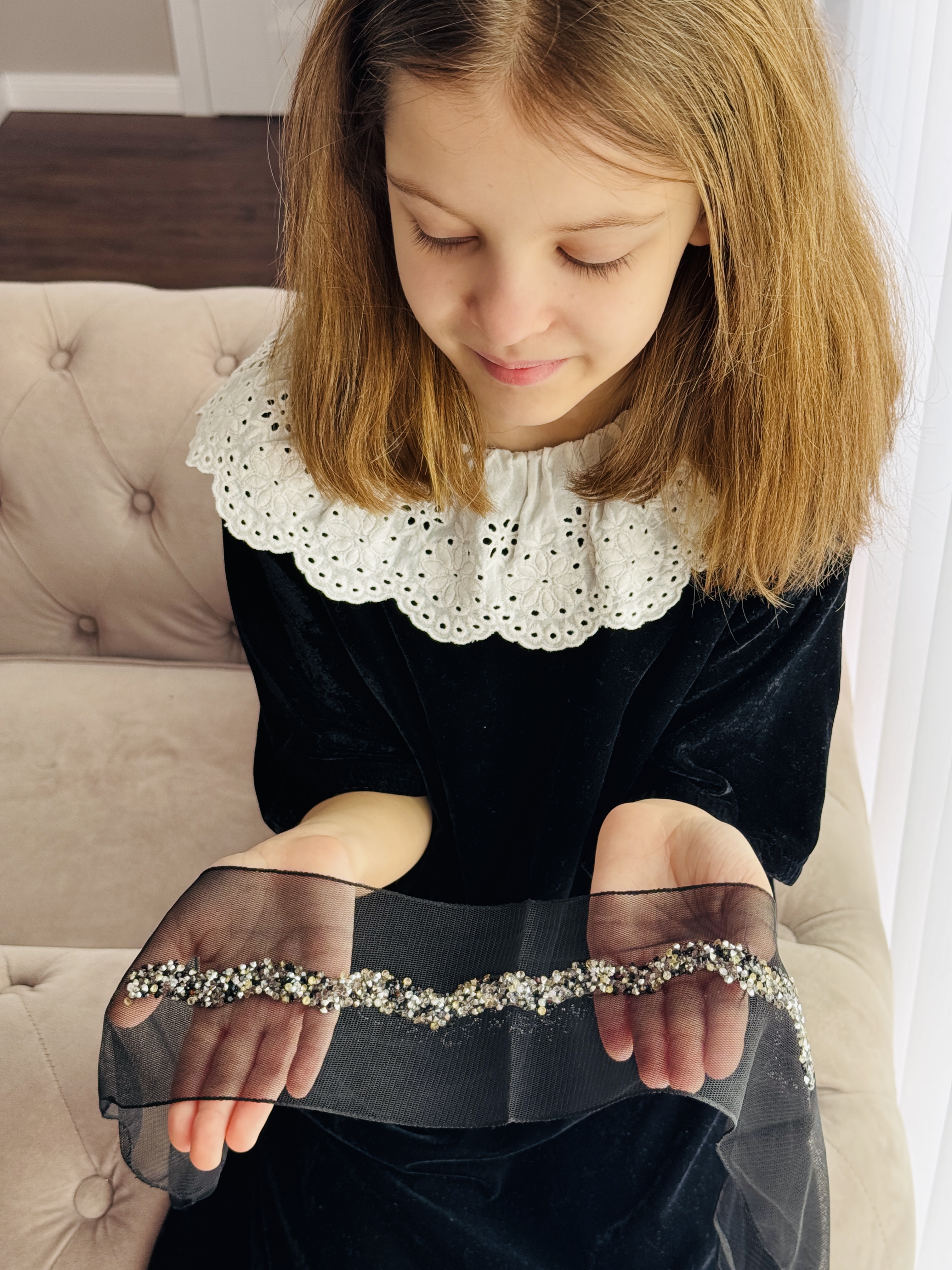 Bentiță din tul - neagra cu pietre colorate,3