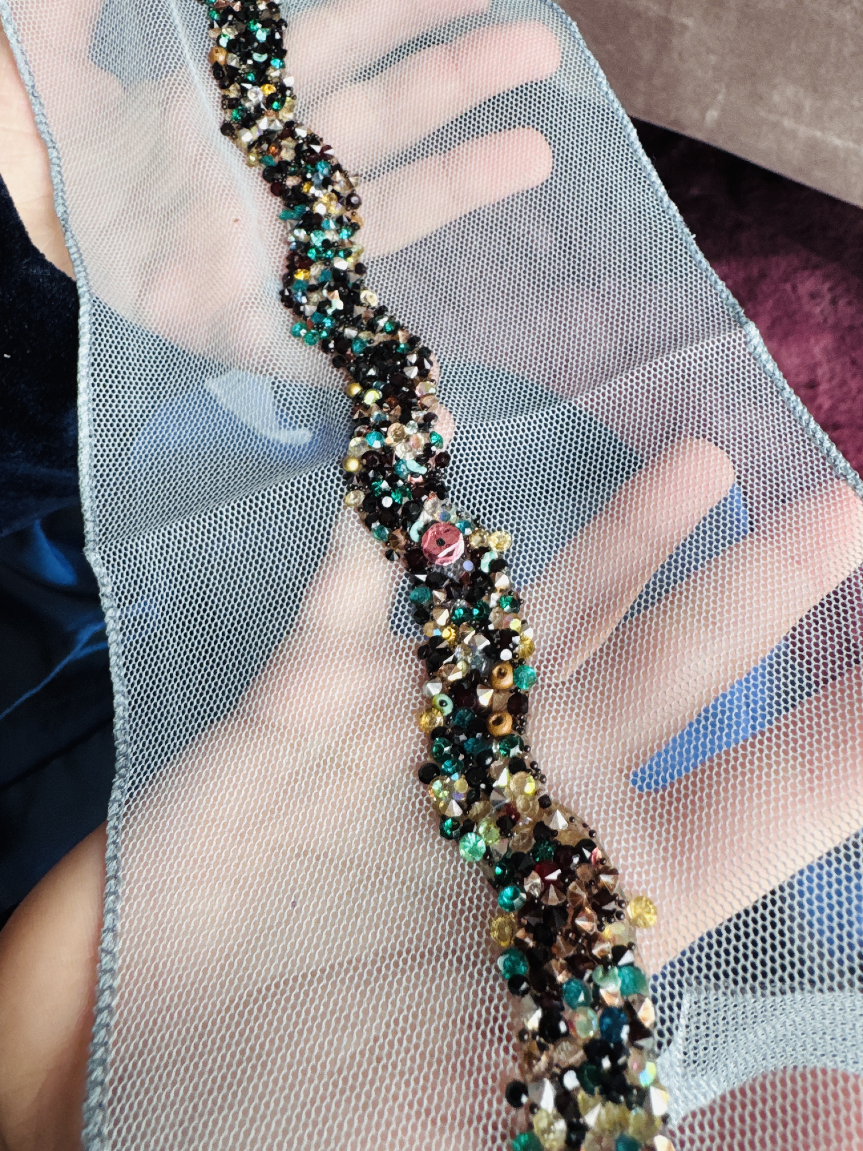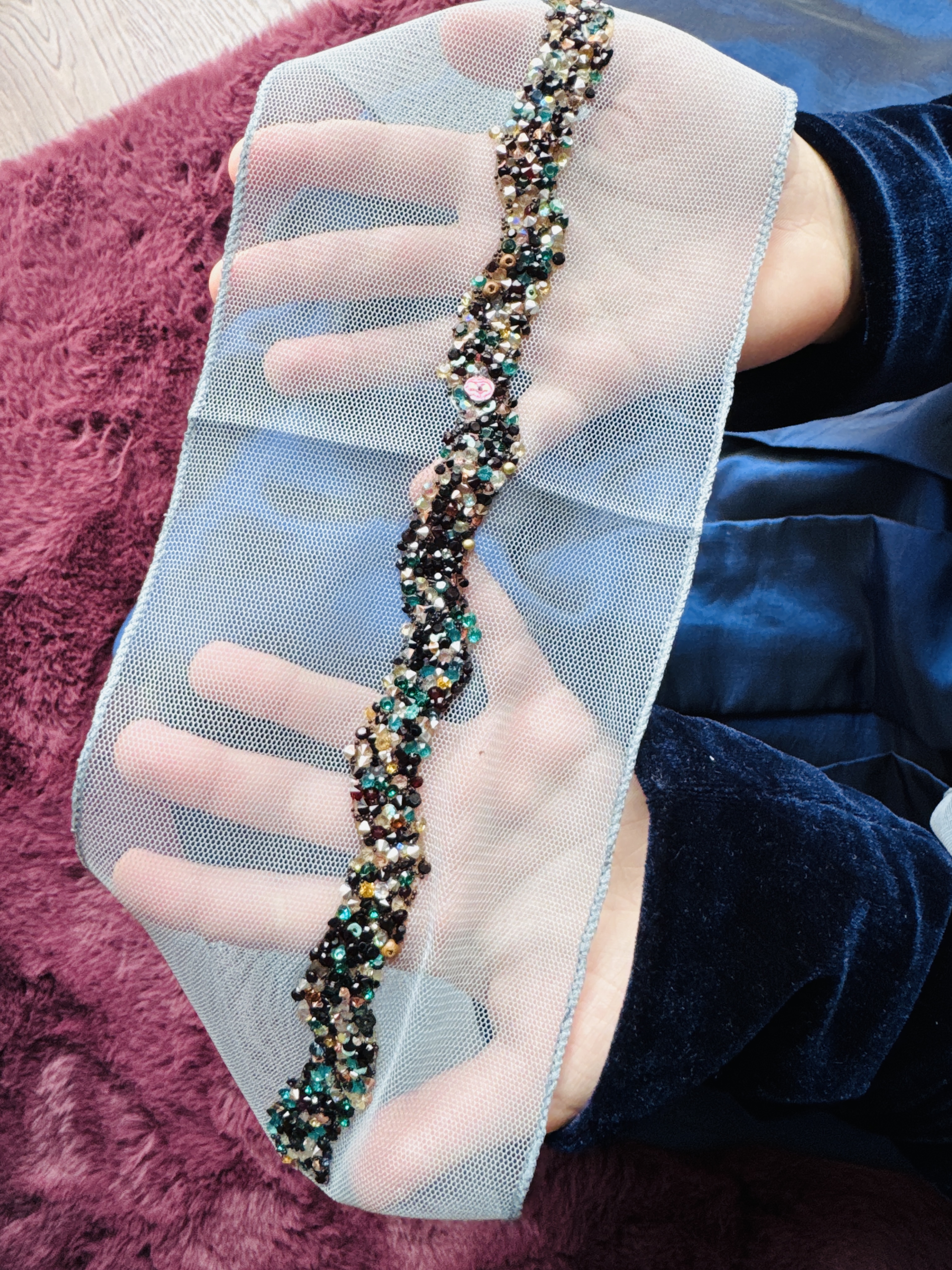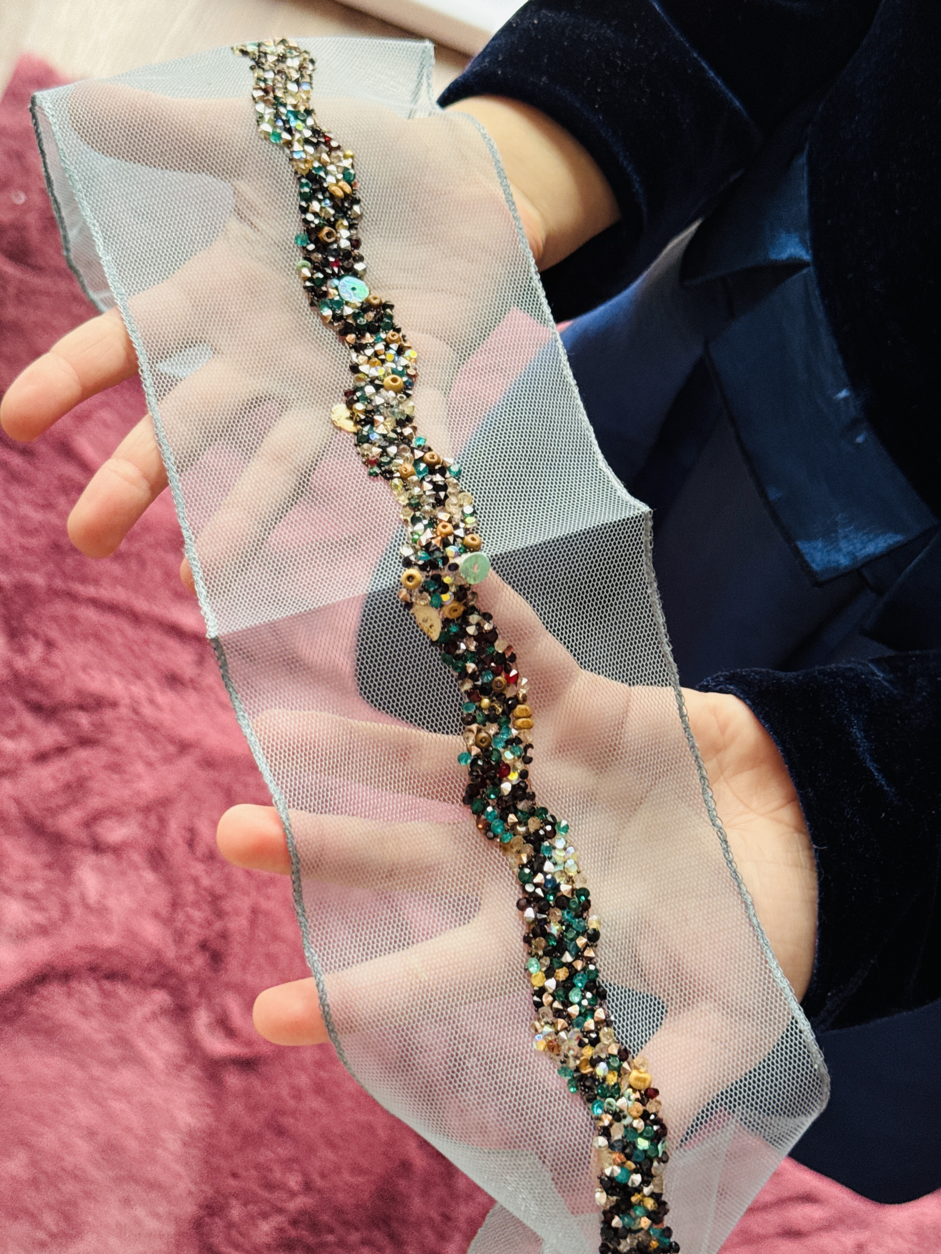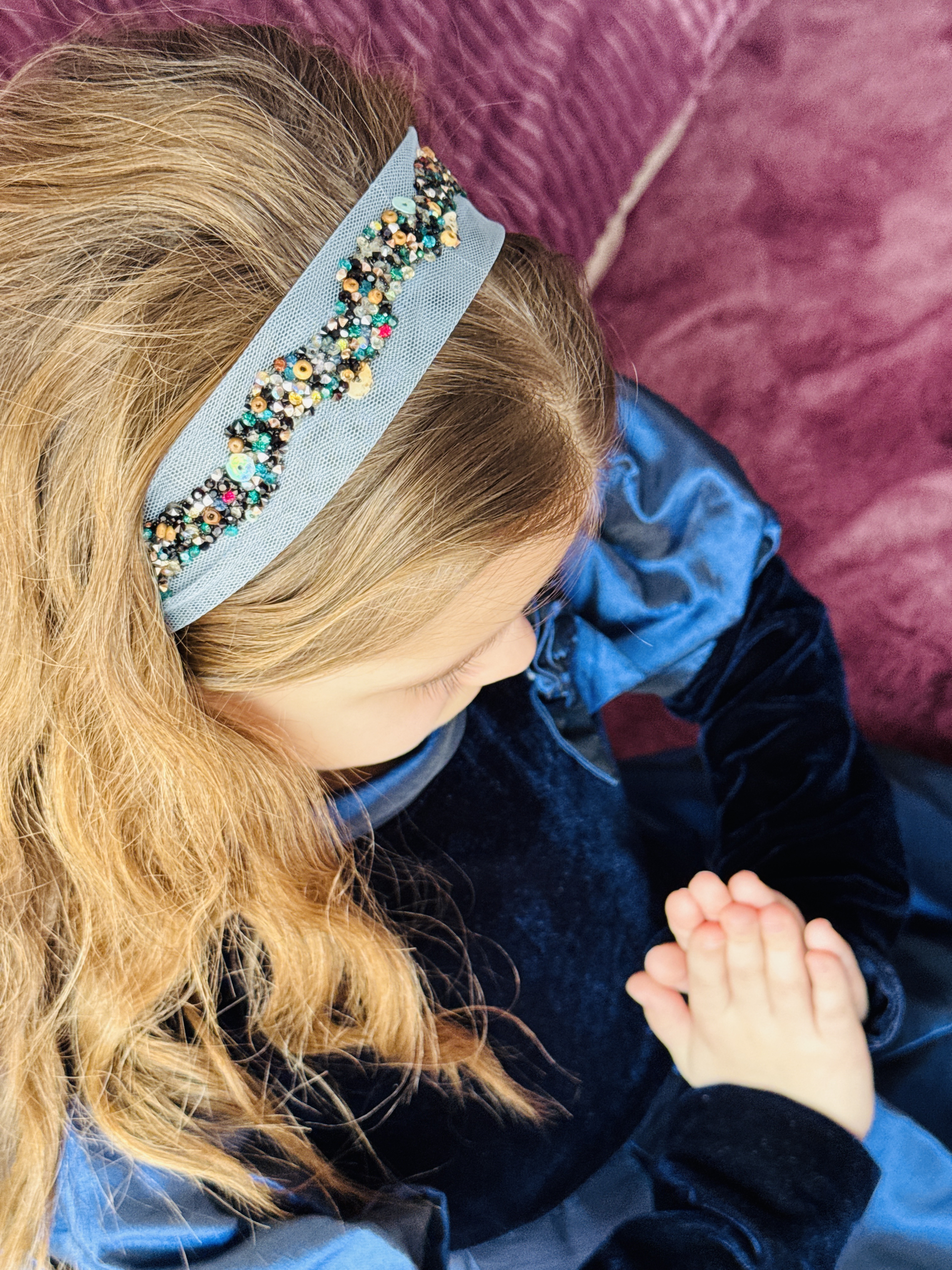 Bentiță din tul - turcoaz pal cu pietre si paete colorate