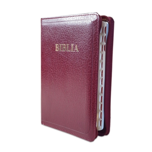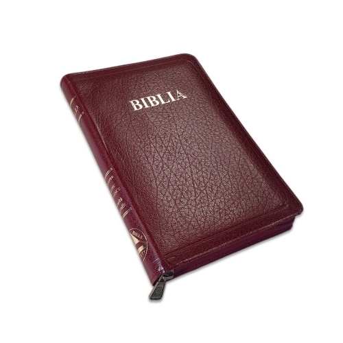 Biblia din piele, visinie 1, fermoar, index pe cotor, margini aurii, cuv. lui Isus cu rosu [057 ZTI]