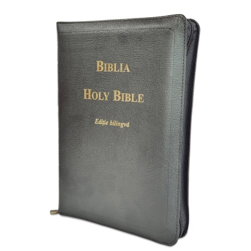Biblia bilingva romana engleza, neagra [cu fermoar]