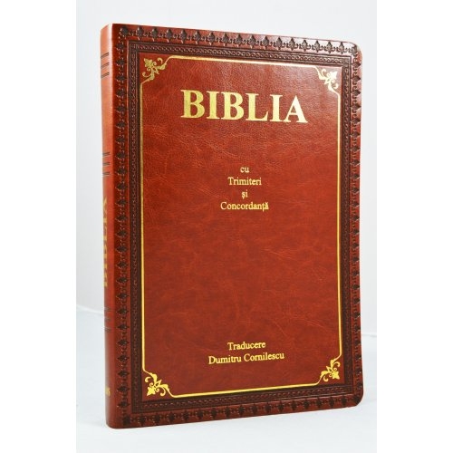 Biblia cu concordanta, mare, scris foarte mare, piele, caramizie, index, fara fermoar, cuv. lui Isus cu rosu [083 TI]