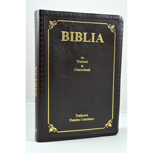 Biblia cu concordanta, mare, scris foarte mare, piele, maro brun, index, fara fermoar, cuv. lui Isus cu rosu [083 TI]