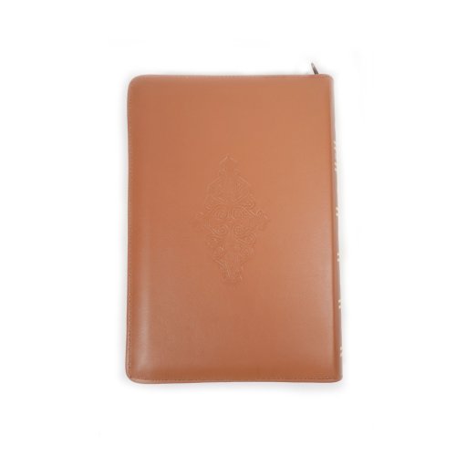 Biblia cu concordanta si explicatii, coperta piele HANDMADE, mare, culoare maro, fermoar, index, margini aurii, simbol cruce , cuv. lui Isus cu rosu [CO 77 HMI]
