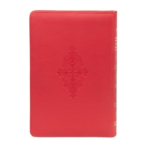 Biblia cu concordanta si explicatii, coperta piele HANDMADE, mare, roșu deschis, fermoar, index, margini aurii, maini in ruga, cuv. lui Isus cu rosu [CO 77 HMI]