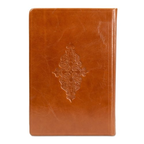 Biblia cu concordanta si explicatii, HANDMADE, mare, piele, maro, index, aurita, cuv. lui Isus cu rosu, simbol cruce [CO 77 HMI]
