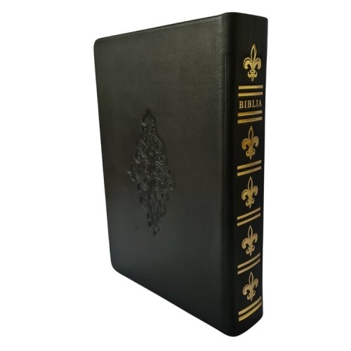 Biblia cu concordanta si explicatii, HANDMADE, mare, piele, neagra, index, aurita, cuv. lui Isus cu rosu [CO 77 HMI]