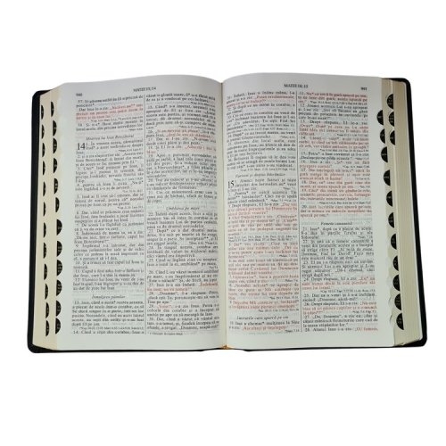 Biblia cu concordanta si explicatii, HANDMADE, mare, piele, neagra, index, aurita, cuv. lui Isus cu rosu, simbol maini in rugaciune[CO 77 HMI]