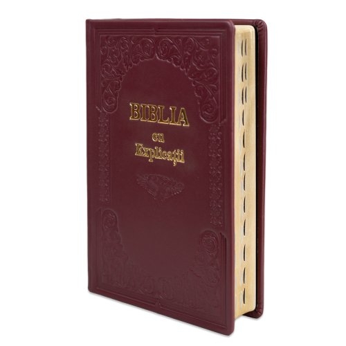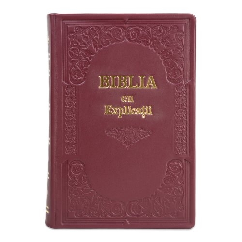 Biblia cu concordanta si explicatii, HANDMADE, mare, piele, visiniu, index, aurita, cuv. lui Isus cu rosu [CO 77 HMI]