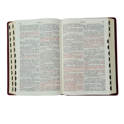 Biblia cu concordanta si explicatii, HANDMADE, mare, piele, visiniu, index, aurita, cuv. lui Isus cu rosu, simbol cruce [CO 77 HMI]