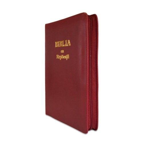 Biblia cu explicatii + concordanta biblica, piele naturala, culoare visiniu, fermoar, index, margini aurii, cuv. lui Isus cu rosu [CO 77 PFI]