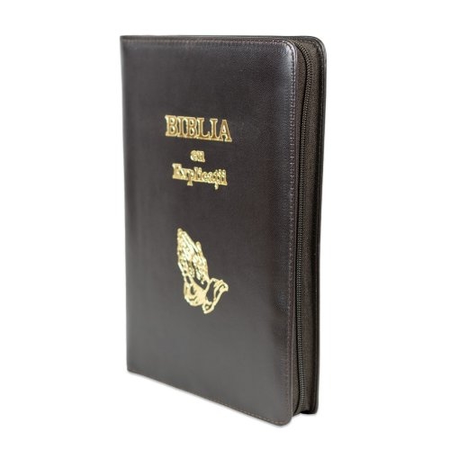 - Finisaje: index de căutare rapidă a cărților biblice (repertoar), margini aurii, cu fermoar