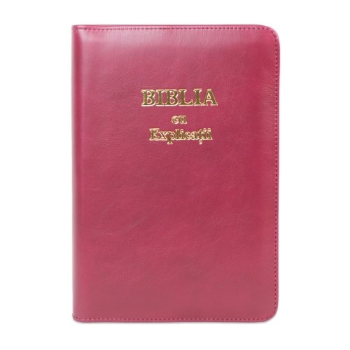 Biblia cu explicatii + concordanta biblica, piele naturala, visiniu deschis, fermoar, index, margini aurii, cuv. lui Isus cu rosu [CO 77 PFI]