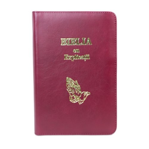 Biblia cu explicatii + concordanta biblica, piele naturala, visiniu deschis, fermoar, index, margini aurii, simbol maini in ruga, cuv. lui Isus cu rosu [CO 77 PFI]