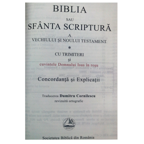 Biblia cu explicatii + concordanta biblica, piele naturala, visiniu inchis, fermoar, index, aurita, cuv. lui Isus cu rosu, simbol maini [CO 77 PFI]