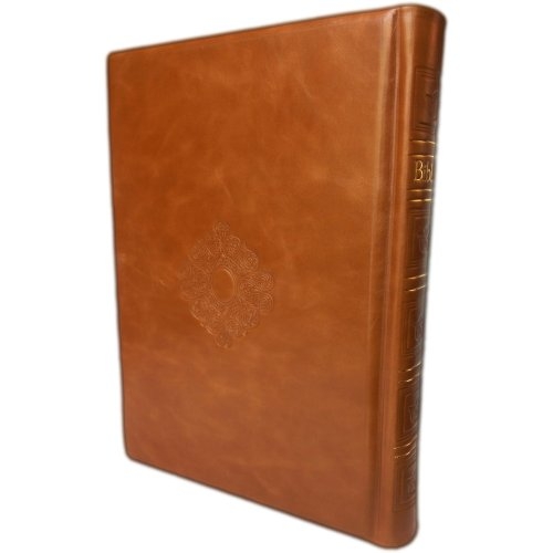 Biblia cu scris foarte mare, marime foarte mare, format A4, coperta piele, prelucrata manual, maro deschis, cu cruce [SB 093 HM]