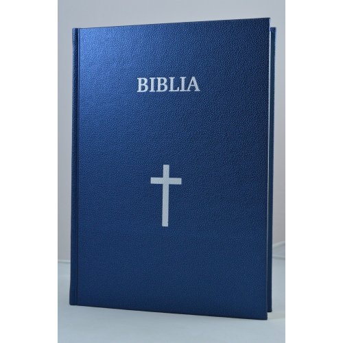 Biblia cu scris foarte mare, marime foarte mare, format A4, coperta tare, bleumarin, cu cruce, trad. Cornilescu [SI 093 CT]