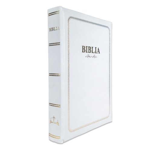 Biblia de amvon, foarte mare, piele groasă, alba, scris foarte mare, margini aurii, index, hărți biblice [097 PI]