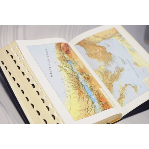 Biblia de amvon, foarte mare, piele groasă, neagra, scris foarte mare, margini aurii, index, hărți biblice [097 PI]