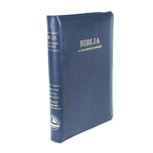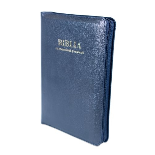 Biblia de lux, cu concordanta si explicatii, mare, piele, bleumarin inchis, fermoar, index, margini aurii, cuv. lui Isus cu rosu [CO 77 ZTI]