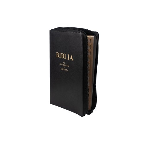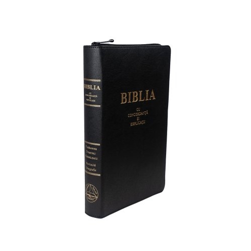Biblia de lux, cu concordanta si explicatii, mare, piele ecologică, fermoar, index, margini aurii, cuv. lui Isus cu rosu [CO 77 ZTI]