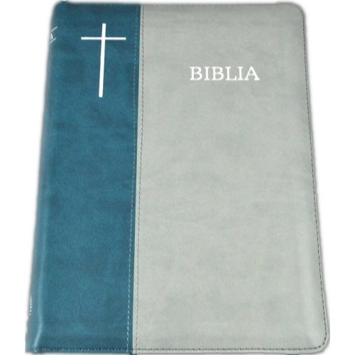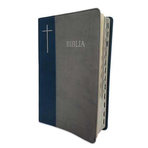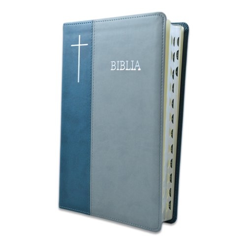 Biblia de lux, mare, coperta imitatie piele, verde | gri, index, margini argintate, cuv. lui Isus cu rosu [SI 073 IP]