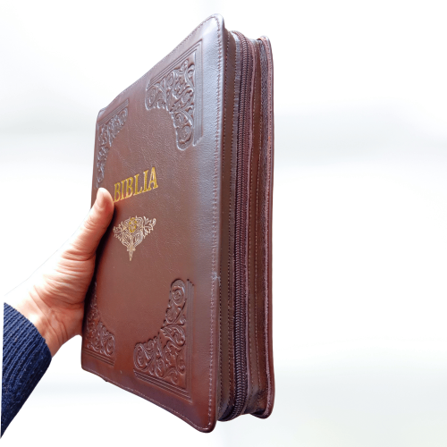 Biblia de studiu inductiv (trad. D. Cornilescu), piele naturala handmade, maro, fermoar, margini aurii