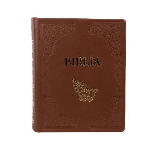 Biblia de studiu inductiv (trad. D. Cornilescu), piele naturala handmade, maro, simbol maini in rugaciune, margini aurii