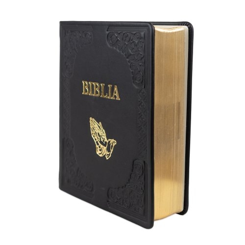 Biblia de studiu inductiv (trad. D. Cornilescu), piele naturala handmade, neagra, simbol maini in rugaciune, margini aurii