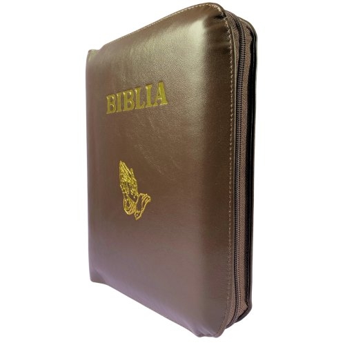 Biblia de studiu inductiv (trad. D. Cornilescu), piele naturala, maro, fermoar, simbol maini in ruga