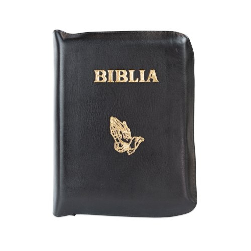 Biblia de studiu inductiv (trad. D. Cornilescu), piele naturala, neagra, fermoar, simbol maini in ruga
