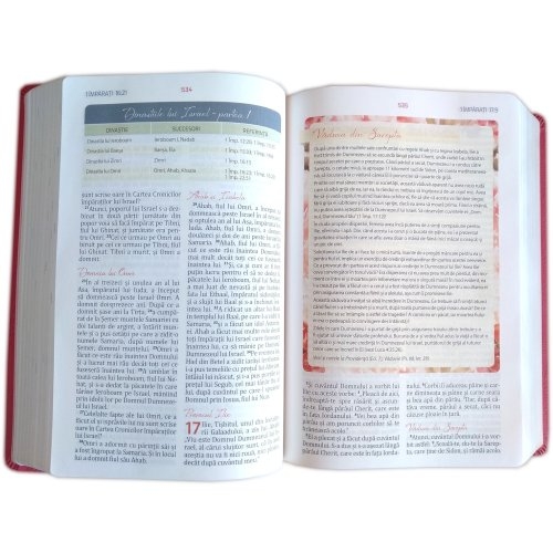 Ediție revizuită ortografic, pagini albe, cu model floral color, și cuvintele Domnului Isus cu roșu.