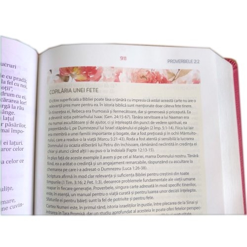 Biblia de studiu pentru femei, marime medie, coperta textila, margini argintii, model 1