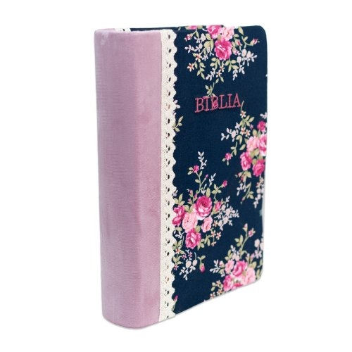 Biblia de studiu pentru femei, marime medie, coperta textila, margini argintii, model 2